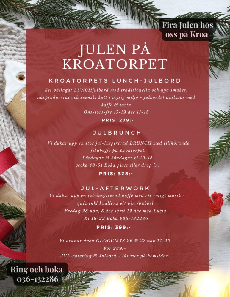 Boka vårt stora julbord i vacker miljö med utsikt över vättern på Kroatorpet.